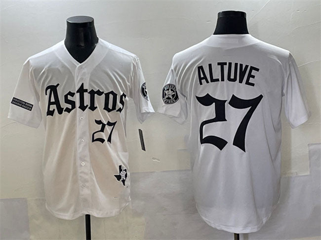 Houston Astros #27 Jose Altuve White Gothic 'Houston Born Barrio Raised' Limited Stitched Baseball Jersey