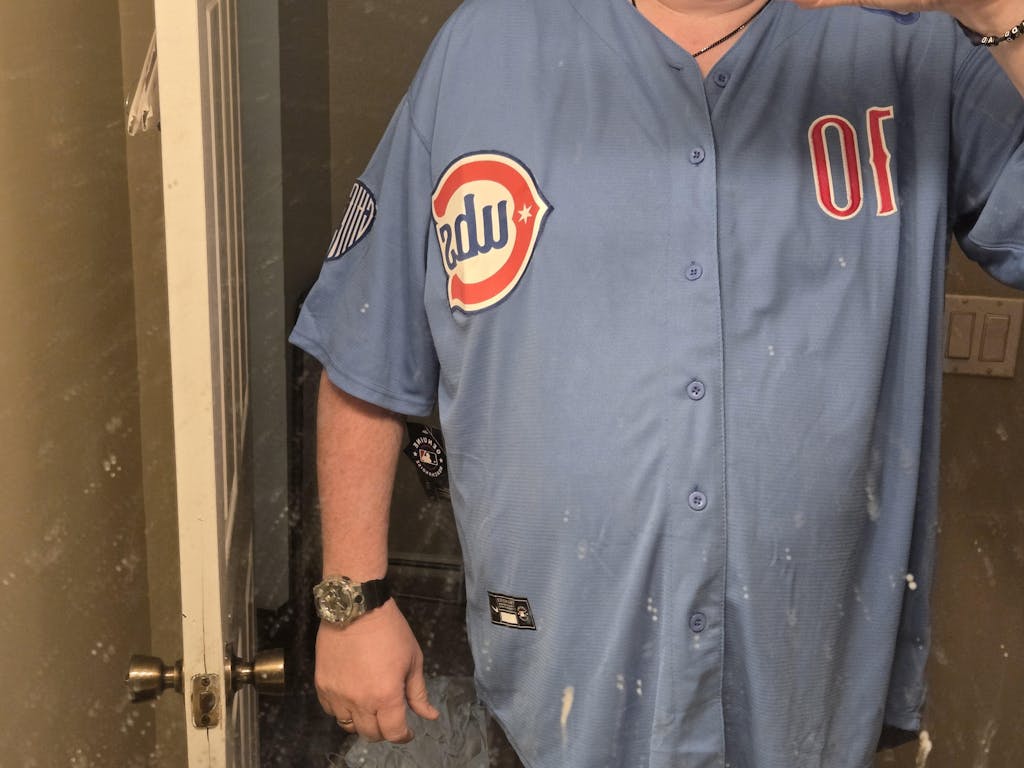 ♦ The name and number and team are all stitched.
